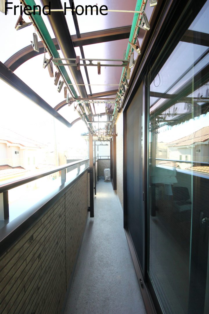 二部屋に渡る広々バルコニーは屋根付きなので、急な雨天でも洗濯物の心配をせずにすみますね!